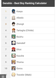 Genshin Impact Best Boy Ranking Calculator Mobile Legends